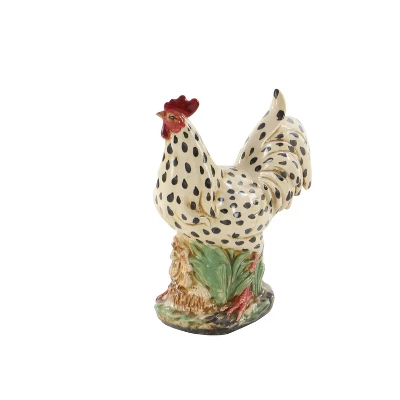 - A rooster shaped, designed with black teardrop-shaped pattern on body, wings, and tail