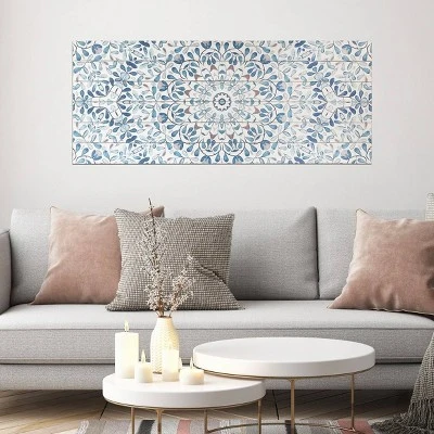 This colorful ornate watercolor pattern offers soft tones of blues, browns and grays. Perfect for a home office, living room or bedroom – Gallery 57 has the best wall art for your home at the prices you need. Measuring 19×45 inches, this item is made of 100% real fir wood. The design is printed with high quality UV inks to prevent fading. Each plank is hand assembled with a strong frame on the backside to prevent warping. Since this item is real wood, it is lightweight and ready to hang on most walls. Two D rings are already included on each side for easy mounting.