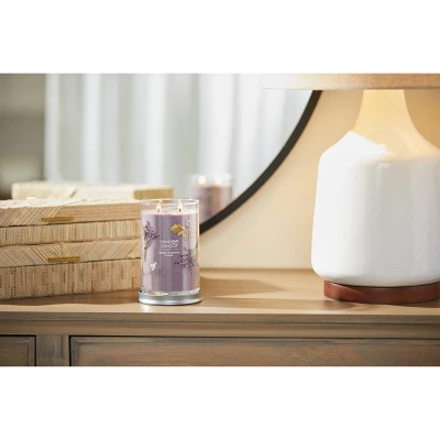 Experience the Yankee Candle® brand, totally reimagined. A fresh take on our Tumbler shape features a brushed tin lid that fits neatly under the base to serve as a candle coaster. Two cotton wicks and a premium soy-wax blend provide a clean burn. Hand-illustrated labels and vibrant wax colors are perfectly matched with Collection-exclusive and tried-and-true fragrances to create an inspired addition to your home. The Dried Lavender & Oak Fragrance takes you to a farmer’s market where hand tied bunches of lavender mill about the woodsy scents and spices.