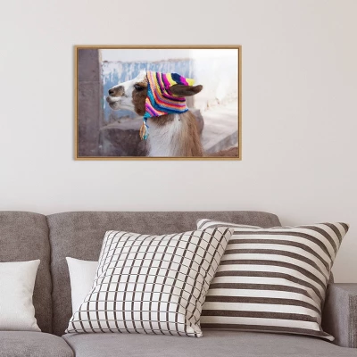 - CUSTOM CANVAS ARTWORK DETAILS: Llama with colorful hat by Jutta Riegel Danita Delimont. DESCRIPTION: In some parts of the world, llamas wear hats with tassels that are used as identification. This particular llama sports a colorful knitted cap quite unlike any other, ensuring that it isn’t going to get lost in a hurry. Jutta Riegel is a photographer living in Europe and South America. She uses her camera to explore her environment. It is the interaction of nature, humans and animals that never ceases to fascinate her.