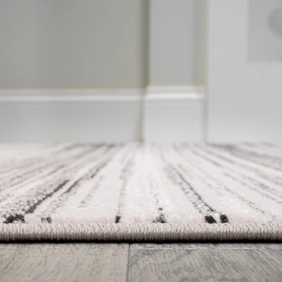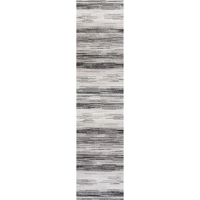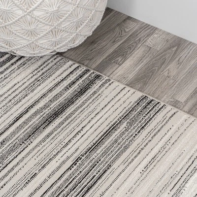 Mingled threads form a stri pattern to create a modern, linear stripe with industrial flair. This rug’s unique gradient striped pattern makes it perfect for homes with kids and pets. It’s perfect for the living room, bedroom or dining room in a contemporary, mid-century or minimalist interior.