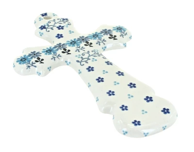 Beautiful hand painted crosses come with a hanging hole so you can decorate any wall in your home with a pop of vibrant color. 7.75 inches x 4.5 inches. The Art of Polish Pottery, as we know it today, started as local folk art centuries ago in the German province of Silesia. The first known pieces of “Bunzlauer” stoneware dating back to the 16th century were crafted by hand and decorated with a folk art stamping technique using potatoes. Original designs were inspired by the peacock feather using the colors of cobalt blue, sage green and ferrous red. These designs and colors are still the inspiration for modern day patterns.Today, skilled Polish artists still individually handcraft and hand decorate each piece using small sponges to stamp each pattern and color. After the process of mixing ingredients, molding the pottery, applying the decorations and glaze, the pottery is twice fired. This process makes the pottery extremely durable, it will not crack or chip easily, and it is perfect for use in the microwave, dishwasher, oven and freezer. Along with our pottery, we have sourced a range of absolutely beautiful hand blown glassware from Poland. It is the perfect addition to your Polish Pottery Collection!