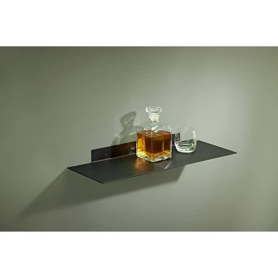Add a modern chic upgrade to your walls and display your favorite items with the Black Dolle Katana Floating Metal Wall Shelf. It is a simple and elegant metal shelf that can be used for all your favorite home decor. The shelf can be mounted with the wall fixing up or down. The shelf can be mounted downsided to appear that the shelf seems to float on the wall or if you’re fixing it up and using it to protect the wall.The Katana shelf is made of a single piece of steel with a 2.5mm thickness and folded on one side for easy installation. Mounting hardware is included with this shelf.