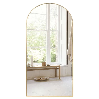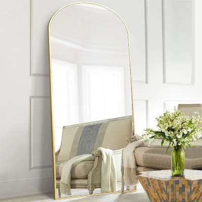 This full-length accent mirror from The Pop Maison reflects classic style in your living room, bedroom, or dressing room. It’s made of shatterproof glass and metal, with a sleek, arched frame. It features both mounting hardware or a removable easel back, so you can hang it on a wall with ease, lean it against any vertical surface, or display it in a freestanding style. This mirror makes any room seem bigger and fills any space with reflected light, and its simple design complements many styles.