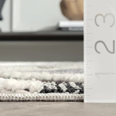 Take your space to new heights with one of our textured rugs. Featuring a high low geometric pattern, this neutral color palette will fit seamlessly in virtually any decor scheme. Machine made in Turkey of silky soft polyester. A rug pad is recommended to prevent slipping and to keep the rug lying flat in one place.