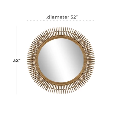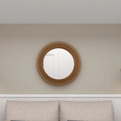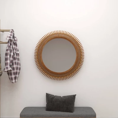 - •This natural brown rattan wall mirror features a sturdy round structure and a rattan-sculpted spring frame