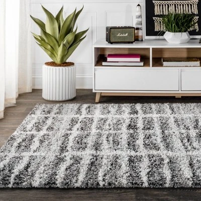 Just like a stacked bond tile design, our Merida Stacked Grid rug has lines arranged in columns. The soft, medium shag pile features mingled shades of gray, with the grid design in ivory. Perfect for a bedroom, living room, or cozy reading nook.